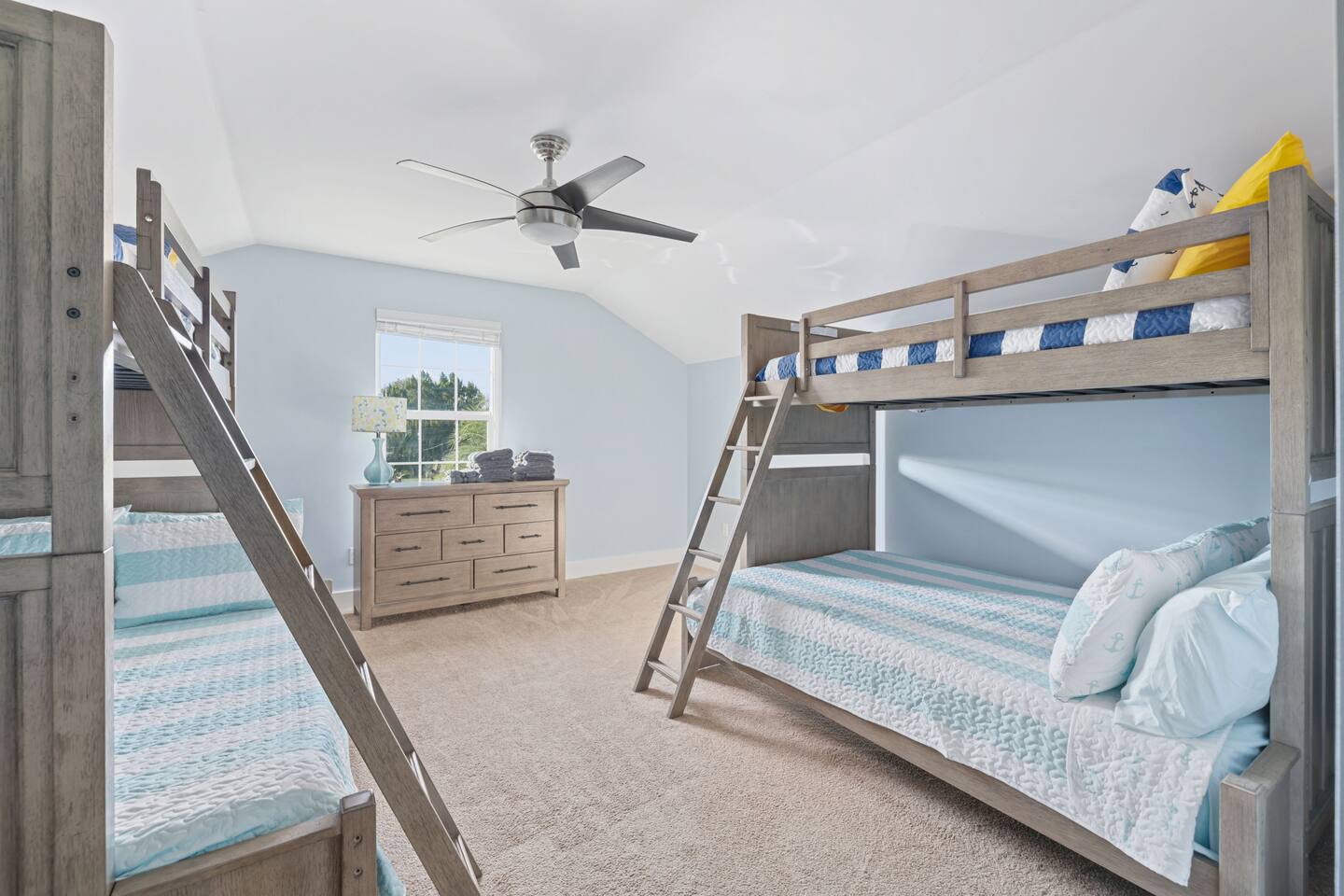 7 Bedrooms; 10 beds: 1 king, 5 queens, 2 sets of bunk beds with single/double bunks