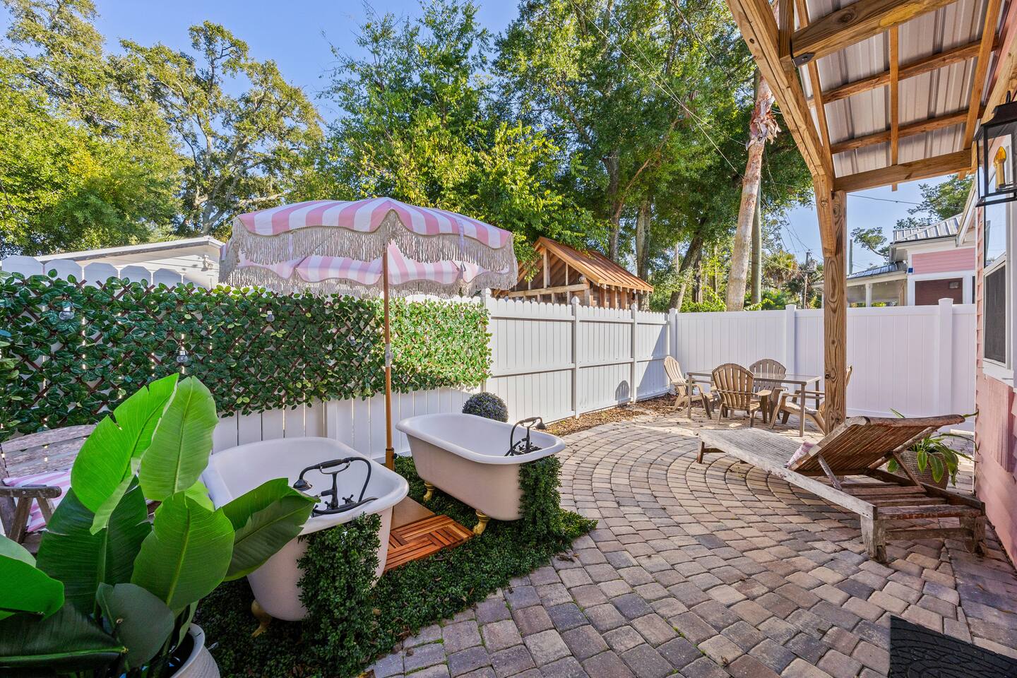 Stay with us and “Have It All!” Just steps from St. George Street, the Fort, Visitor Center, trolley, coffee shops, and Bayfront, yet tucked in a quiet neighborhood. Only 7 minutes to the beach. After exploring, soak in one of two outdoor clawfoot tubs under the stars or sip coffee and wine on the porch. The Little Pink House blends charm, comfort, and location—your perfect St. Augustine getaway.